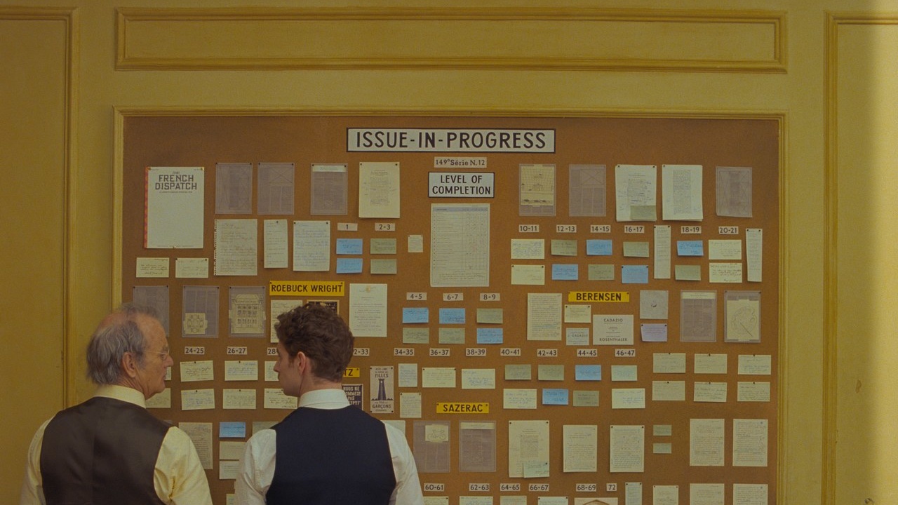 Pero todos estos 3 relatos están conectados porque formarán parte de un relato mayor, protagonizado por Bill Murray y que cuenta justamente la creación de este número particular de la revista en cuestión. Y allí se encuentra este obituario del que tanto se hace cargo el film. Vinimos a ver los últimos retazos de un mundo que ya no existe, tema ya tratado en “El gran hotel Budapest”, pero aquí, al igual que con su estética, llevado al extremo. El mismo tono cómico y alegre es usado para narrar momentos dolorosos, las tragedias definitivas y sus situaciones no del todo alegres. Todo esto es acompañado de recursos cinematográficos que despistan y confunden al espectador, acostumbrado hoy a relatos más convencionales y ya vistos.